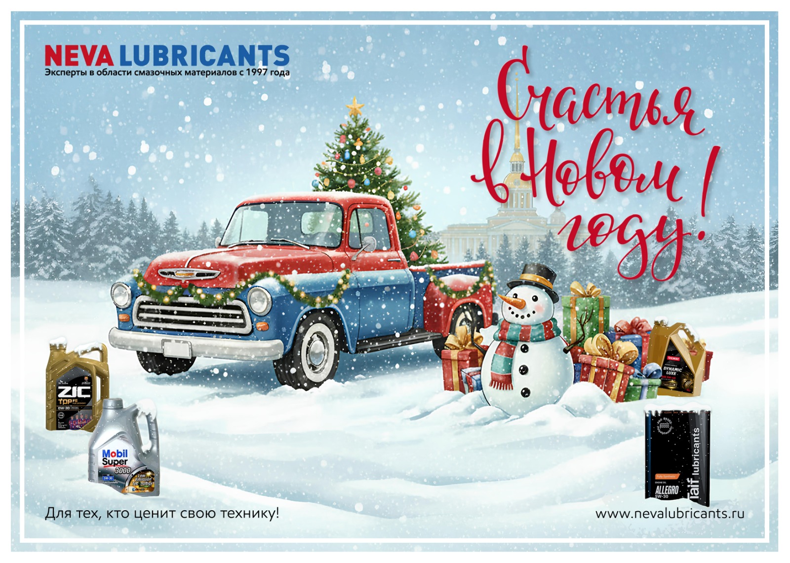 Команда ООО «НЕВА» поздравляет вас с праздниками — пусть они будут такими же надёжными и эффективными, как наши моторные масла!