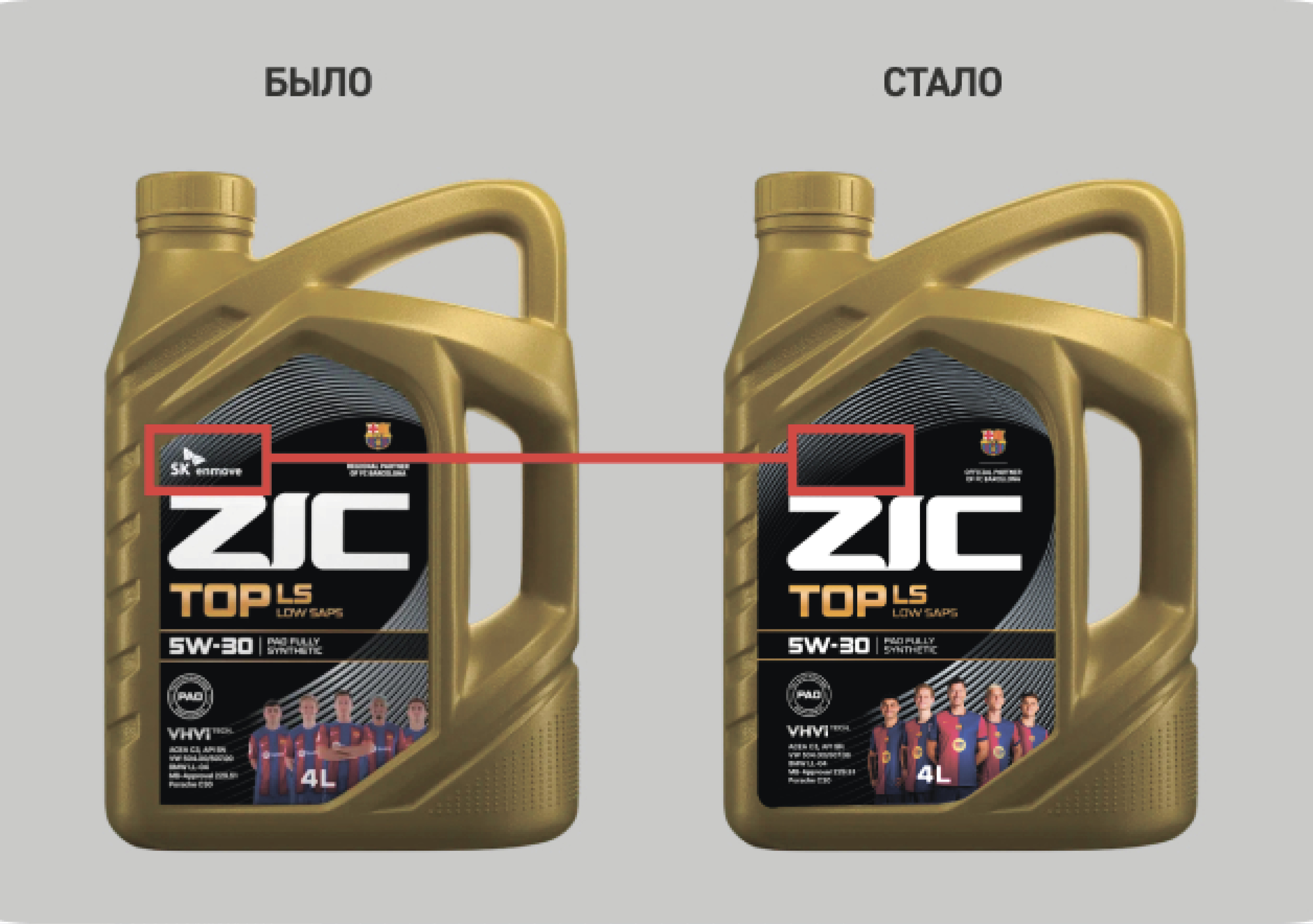 Логотип. На лицевой стороне теперь только бренд ZIC — для усиления его узнаваемости. Логотип SK Enmove перенесён на обратную сторону (рядом с адресом производителя).